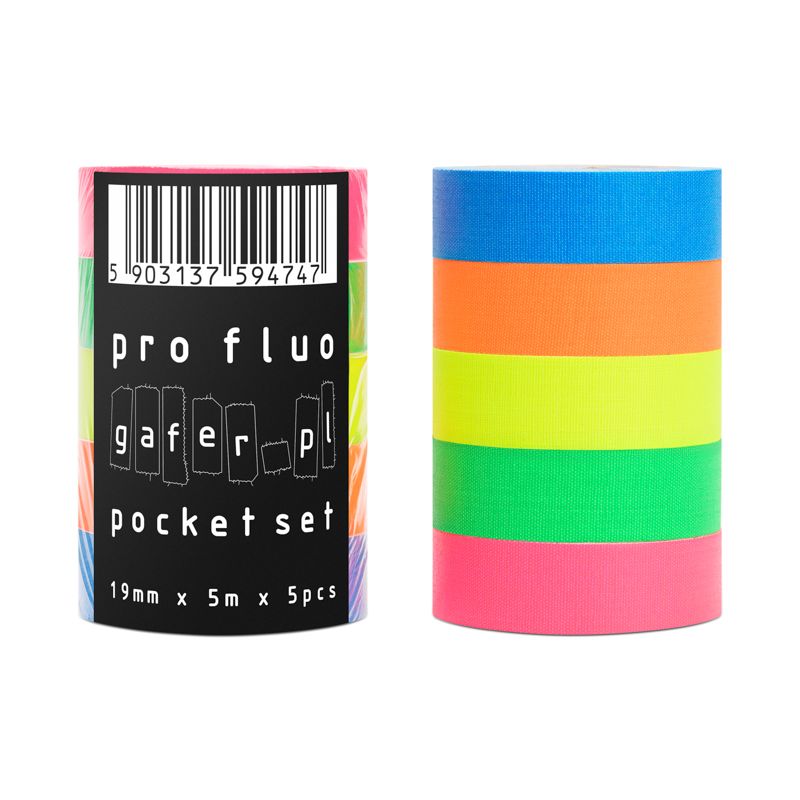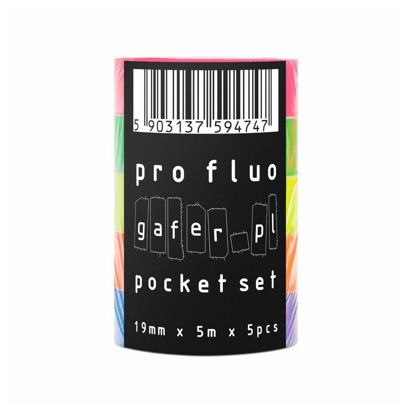 Sada pěti velmi oblíbených profesionálních fluorescenčních pásek v provedení mini. Stejná páska, jen v super kompaktním rozměru 19 mm x 5 m. Protože zabírá méně místa, můžete roli hodit do auta nebo kufru, případně ji připevnit na batoh či klíčenku. Vysoce kvalitní fluorescenční textilní páska o šířce 19 mm a délce 5 m. Pět barev v balení: žlutá, zelená, modrá, růžová a oranžová.