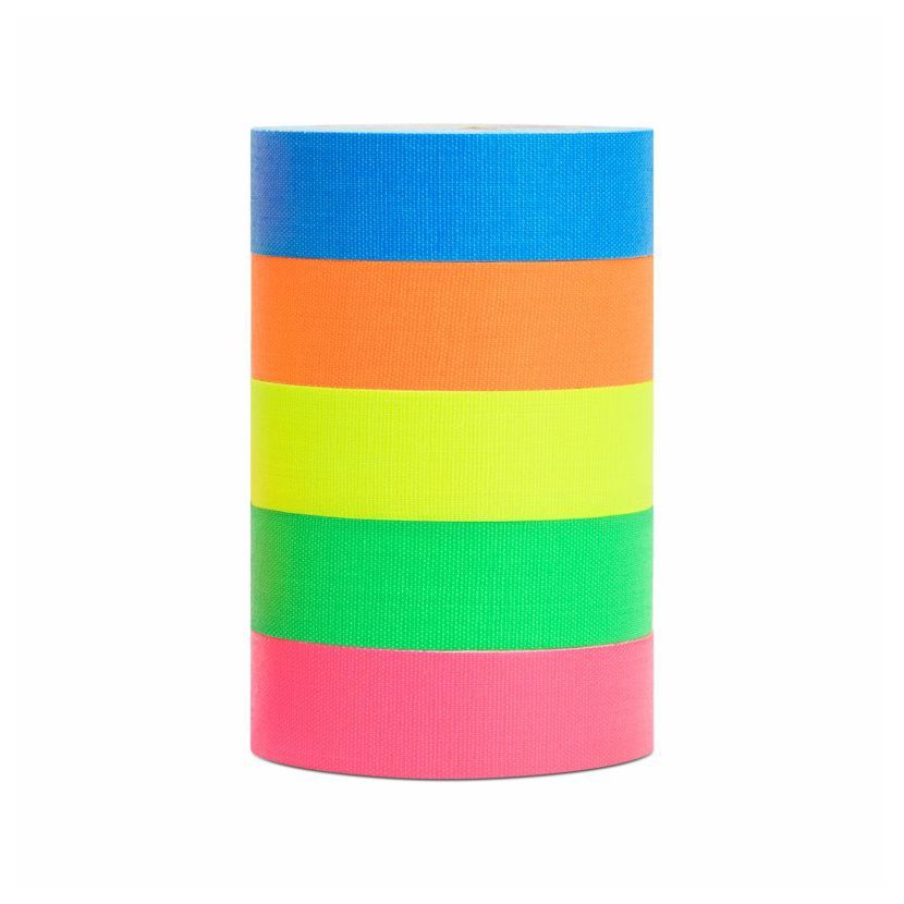 materál: nejvyšší kvality fluorescentní textilní páska popisovací kvalita: profi lepivost: velmi vysoká povrch: drsný barva: sada 5 barev šířka: 19mm délka: 5x5m